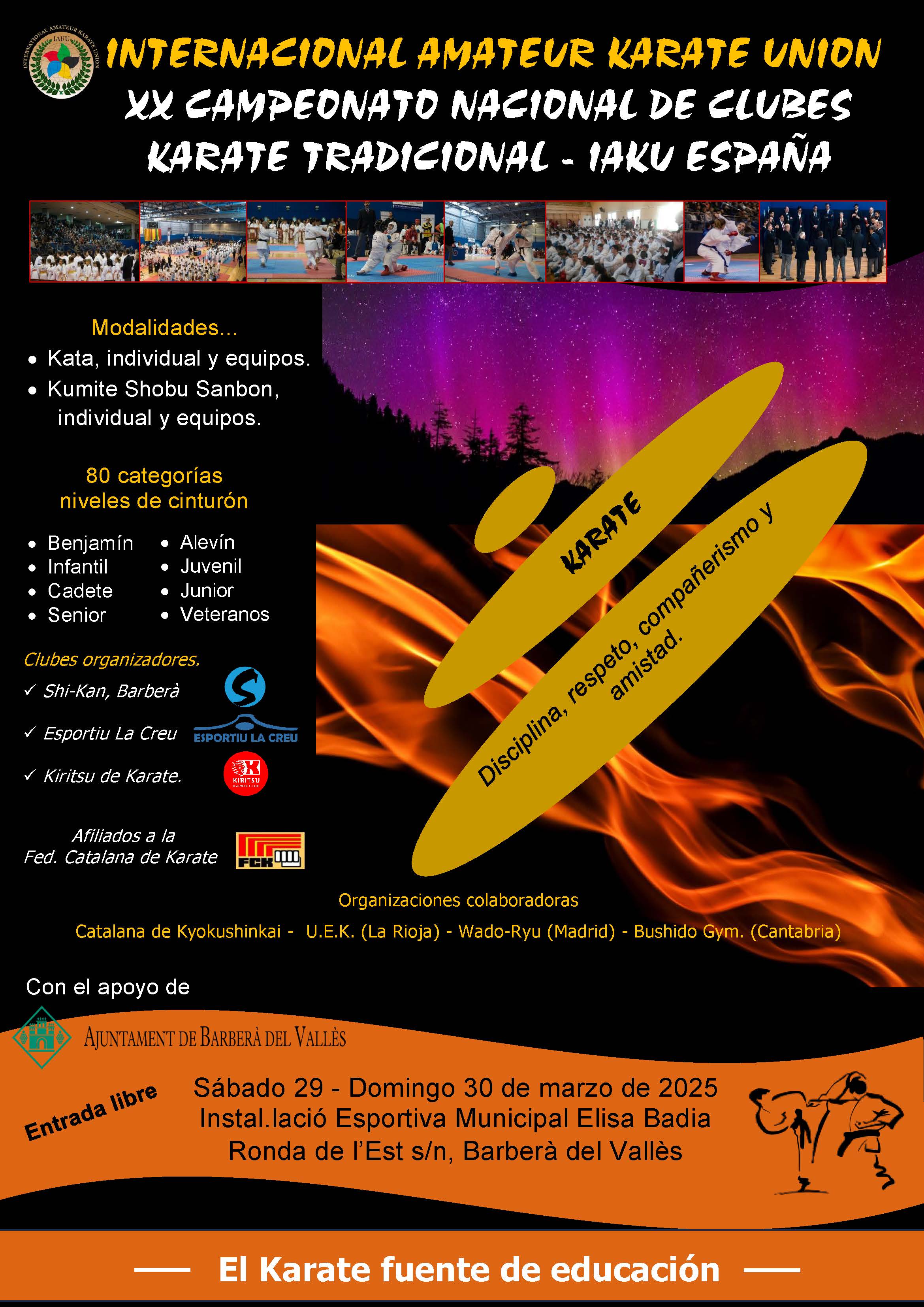 29 y 30 de marzo | Internacional Amateur Karate Unión. (IAKU). Cartel XX Cto. Nacional de Clubes Karate tradicional. (Kata Interestilos y Kumite Shobu-Sanbon).
