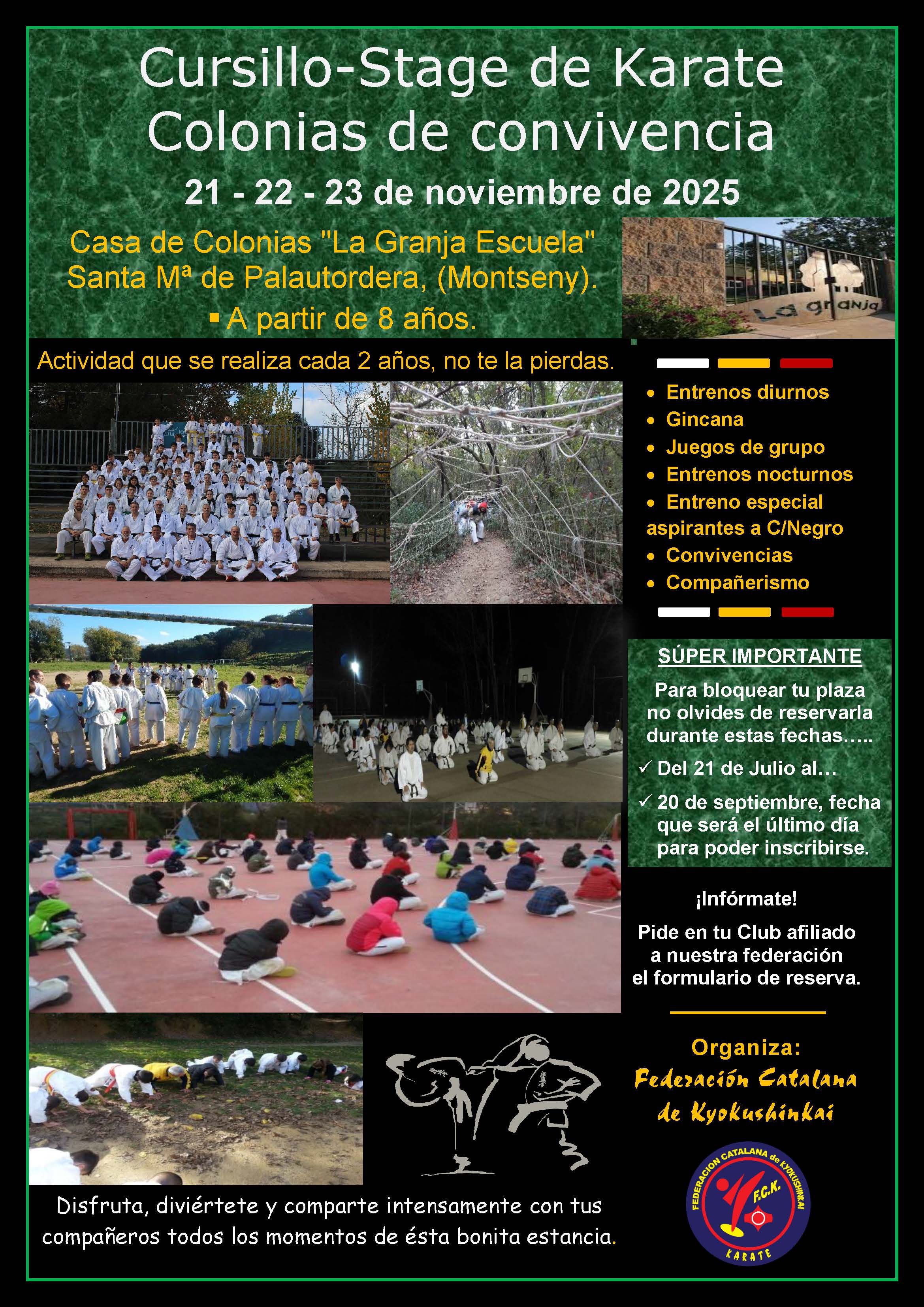 Iremos incorporando las actividades, fechas y lugares que sean comunicadas y confirmadas.Las actividades organizadas por la Federació Catalana de Karate, pueden sufrir modificaciones por la disponibilidad de los Pabellones. |